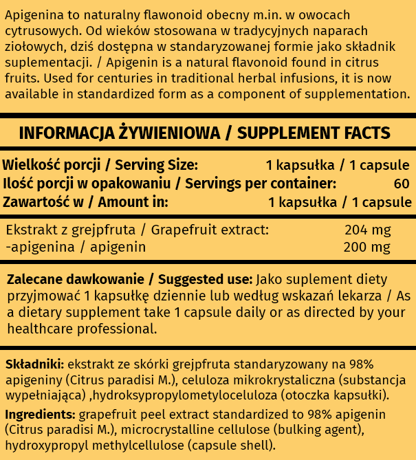 Apigenina ze skórki grejpfruta w kapsułkach suplement diety